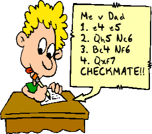 Hey, watch out! Black's just taken something! To write down a capture, we put a cross (a letter x or a times sign) instead of the dash. So Black's move was e5xd4. OK?