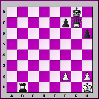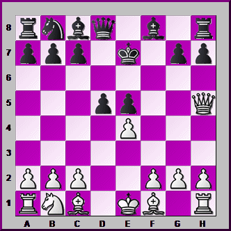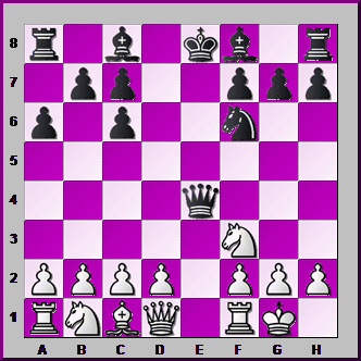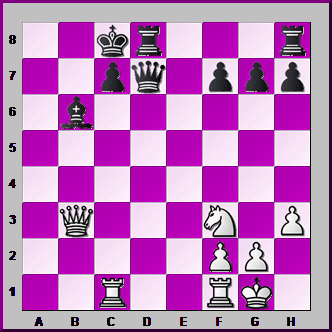 This position's a bit harder. White's Bishop on c4 is PINNING the Black Pawn on f7. How can White use this PIN to win a vital Pawn with his Queen?![]()