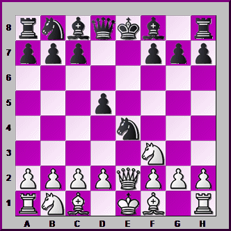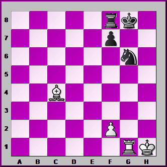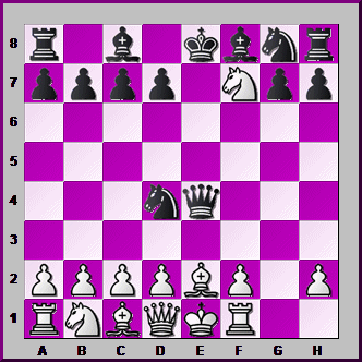 Just to be different, this time you're BLACK. The White Bishop on e2 is PINNED by the Black Queen. How can you use this to deliver CHECKMATE with your Knight?![]()