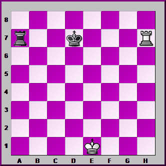 A SKEWER is like a PIN the other way round. Your piece THREATENS a more valuable piece, which has to move, allowing you to take a less valuable piece behind it. Here's a simple example. White has just moved his Rook to CHECK the Black King. The Black King must move aside, letting White CAPTURE the Black Rook next move. Simple enough, isn't is?