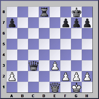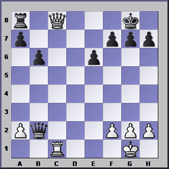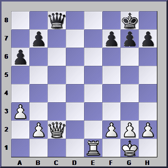 Which of these moves is best for Black now? Qb2-b1+ Qb2-a1+