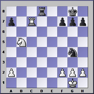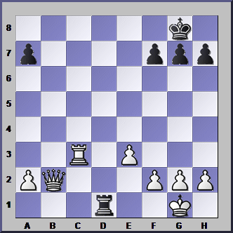 Just take a look at this position. White is winning easily. What would you advise him to do next? Rb7xg7