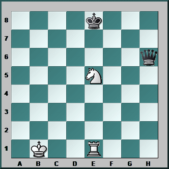 It's White's move. His Queen is THREATENED but he's not worried about that. He can play a DOUBLE CHECK. Can you find the best move? ![]()
