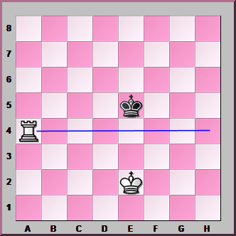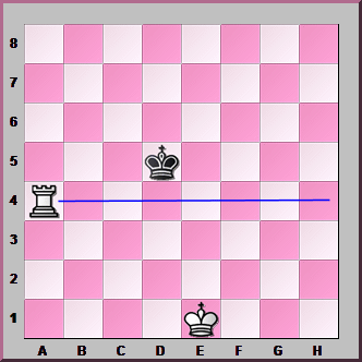 We'll start with this position. Get out your chess set, set up the position and play it through yourself. Start with these moves: 1. Ra1-a4 Ke5-d5