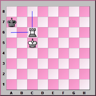 Again the White King moves nearer - Kd5-c5 and the Black King returns - Kc7-b7. Over to you - you should have the idea by now! Rd6-a6