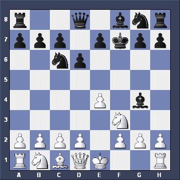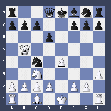 And here's the position after the Queen CHECK. This time it's a QUEEN FORK! After White gets out of check Black plays Qb6xb5, with an extra pawn. And White can no longer castle!