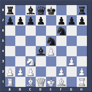 Here's the position. It looks like Black's gone mad! He's just giving up a Knight for a Pawn, isn't he? But there's method in his madness. Read on to find out what happens next.