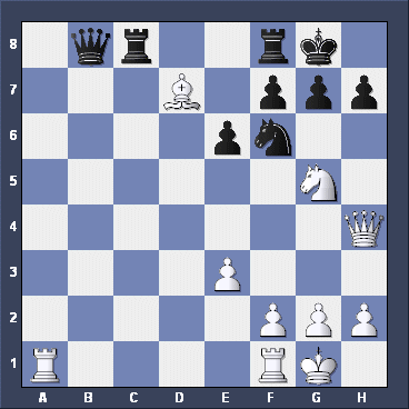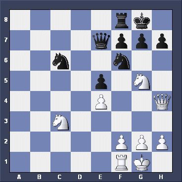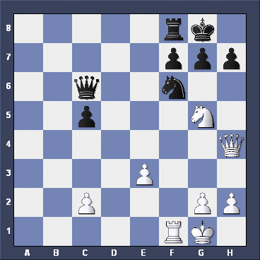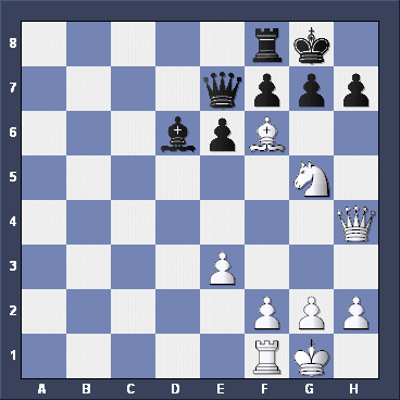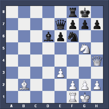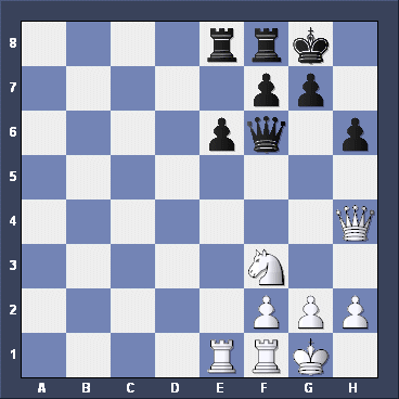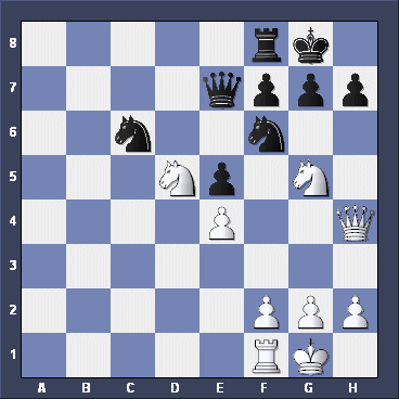 Qh4xh7 would be CHECKMATE but for one thing. The Black Knight on f6! So what do we do to get rid of it? ![]()