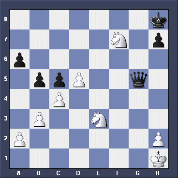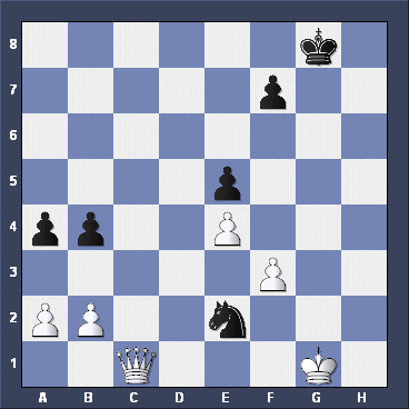 This time we can't CAPTURE the defending Knight. So we have to do something a bit more subtle instead. Can you find the winning move for White? ![]()