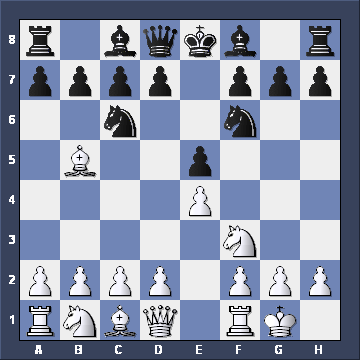Play these moves on your board. 3... a7-a6 4. Bb5xc6 d7xc6 reaching this position. Stop for a moment and decide whether or not White should capture on e5 here.