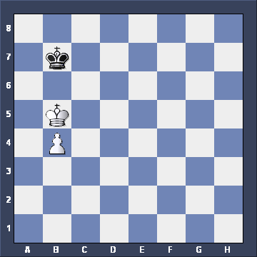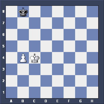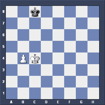 Yes, if White plays Kc4-c5, Black must take the OPPOSITION with Kb8-c7. Everything else loses. And if White plays Kc4-b5 instead, what then? ![]()