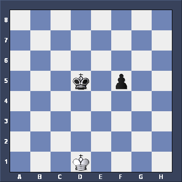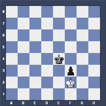 Again there was no choice. White had to take the OPPOSITION to prevent the King advancing. Now Black decided to move his pawn: f5-f4. Here's the position. What now for White? ![]()