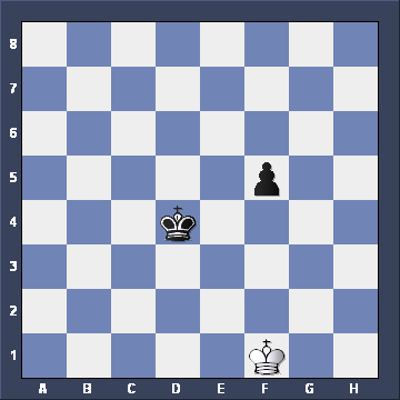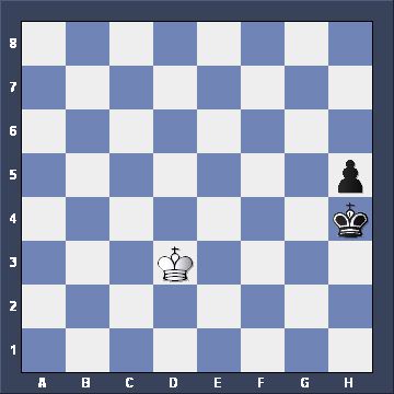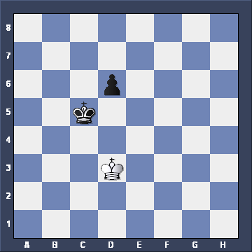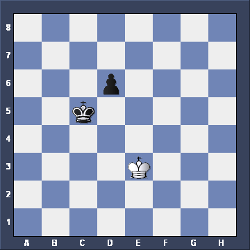 Yes, Black wins, not by advancing the pawn, but by TAKING THE OPPOSITION. But what if White had played Ke2-e3 instead, giving this position. What would Black play then? ![]()