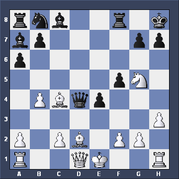 On your left you'll see what looks like a quiet and peaceful scene. Black's trying to exchange queens, but does White really want his Queen off the board? What do you think? ![]()