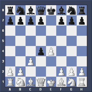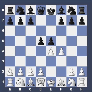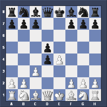 Another 2nd move for Black is d7-d5 (remember that one?), called the FALKBEER COUNTER-GAMBIT. Tell me which pawn should White take now? The d-pawn The e-pawn The frogspawn The toadspawn