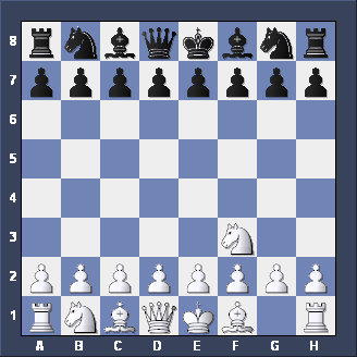 This is ALEKHINE'S DEFENCE (you met Alekhine in the last lesson) - a very provocative opening. White's pawn immediately comes under attack. What should he do about it?