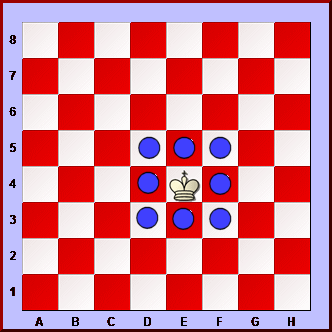 In this position the KING can only move to d4, d5 and f5.