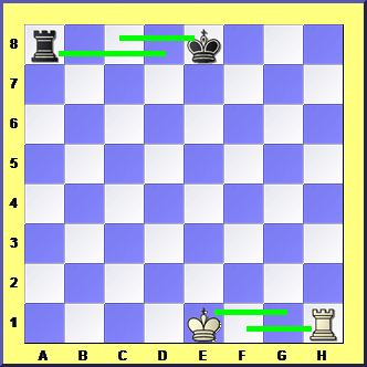 When you CASTLE you move your KING TWO SQUARES towards the ROOK, and, in the same move, transfer your ROOK over the top to the next square.