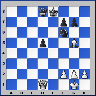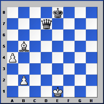 Q2. Where should White move his Queen to FORK the enemy King and Bishop?