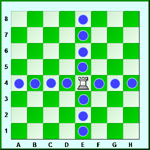 In this diagram the ROOK can move to all the squares marked with a circle.