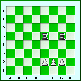 Q3. Where should the WHITE move a PAWN to FORK the BLACK ROOKS?